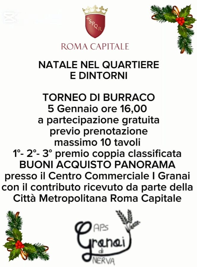 La Casa Sociale per Anziani e del Quartiere gestita dall'APS Granai di Nerva, svolge le proprie attività nei locali in via Tazio Nuvolari 250 Roma VIII Municipio, nel primo piano di un edificio scolastico, raggiungibile sia con le scale che con ascensore, I locali comprendono la Presidenza, la Segreteria, una stanza dedicata ai corsi artistici (ceramica, disegno, pittura e mosaico) una stanza dedicata al ristoro ed al gioco della carte, servizi igienici per donne, uomini e disabili, una salone per attività ginniche, di ballo, feste sociali, computer, proiezioni e convegni, il tutto collegato con un capiente corridoio utilizzato secondo le necessità.